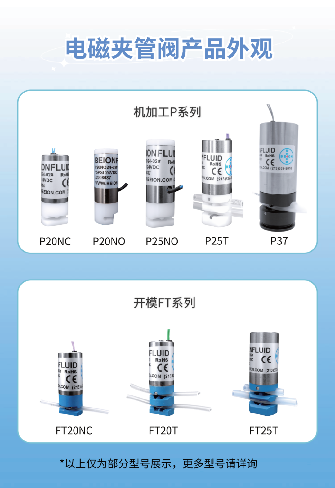 北昂流体融合先进的流体控制技术与精密制造工艺,自主研发生产出多种电磁阀,涵盖夹管式、膜片式等多种结构类型,为客户提供耐化学腐蚀、耐颗粒、耐高温高压、低泄漏、快速响应等一系列选择,满足各种复杂应用场景下的需求,广泛应用于体外诊断、实验室分析、生物医药、环境监测等行业。