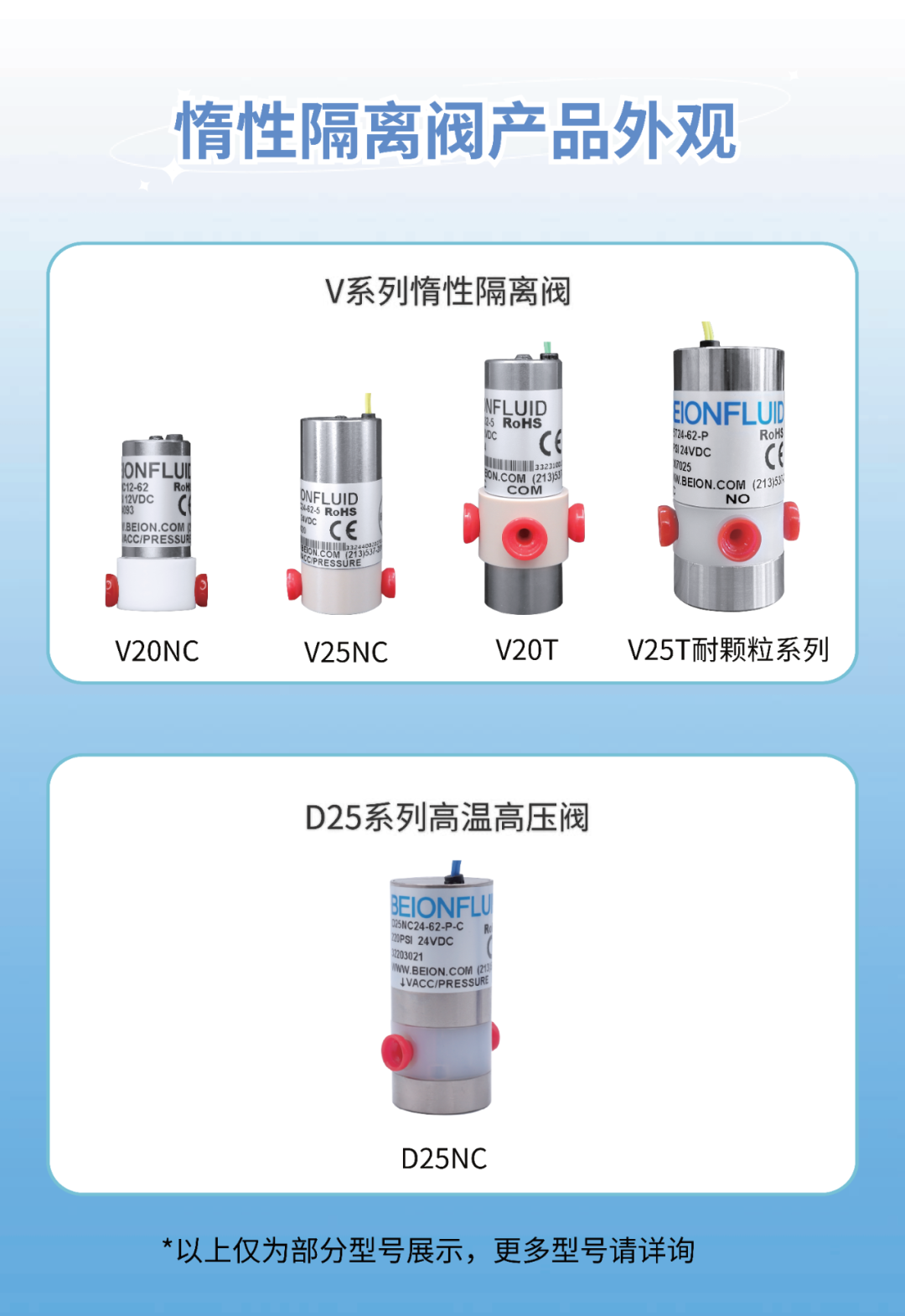 直动式隔离阀利用通电导体产生的磁场对衔铁产生磁力作用,磁力推动膜片运动实现阀门打开或关闭,实现对流道控制。北昂流体V系列惰性隔离阀,触液部分只包括隔膜和阀体,标准阀体材料为PTFE,隔膜材料有PTFE、EPDM、FFKM等,适用于多种腐蚀性化学液体。